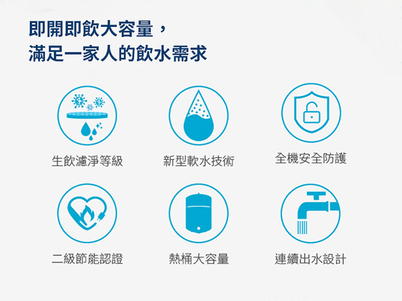- 熱水取用更充足,滿足一家人沖泡飲品、料理食材的需求